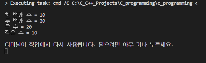 printf("작은 수 = %d \n", (x < y) ? x : y);