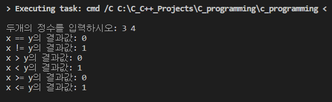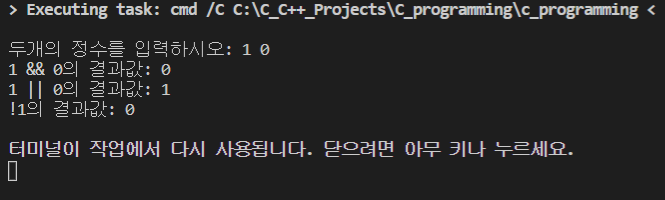 printf("%d || %d의 결과값: %d\n", x, y, x || y);