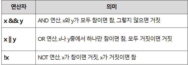 : 여러 개의 조건을 조합하여 참과 거짓을 따지는 연산자