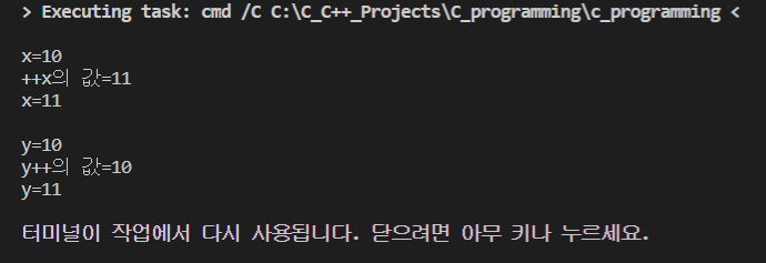 y = ++x; // 증가된 x의 값이 y에 대입(전위)