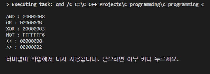 printf("%d && %d의 결과값: %d\n", x, y, x && y);