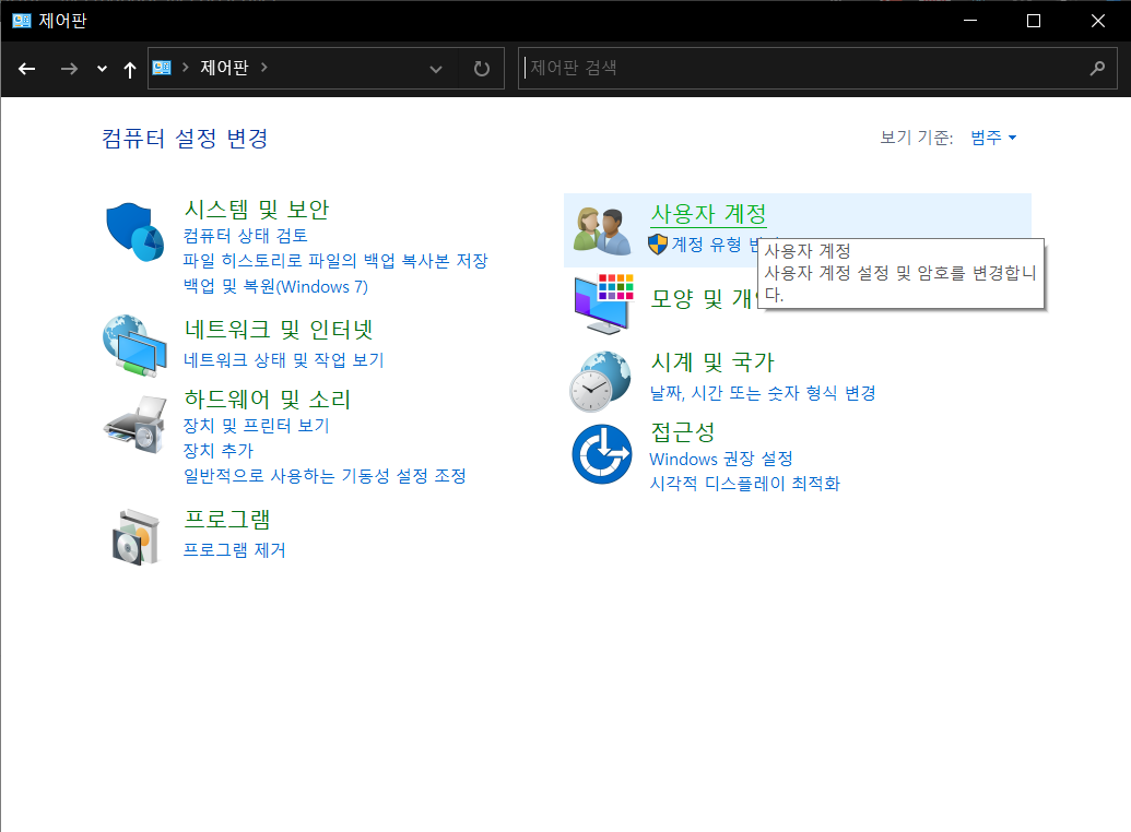 1. 제어판 > 사용자 계정