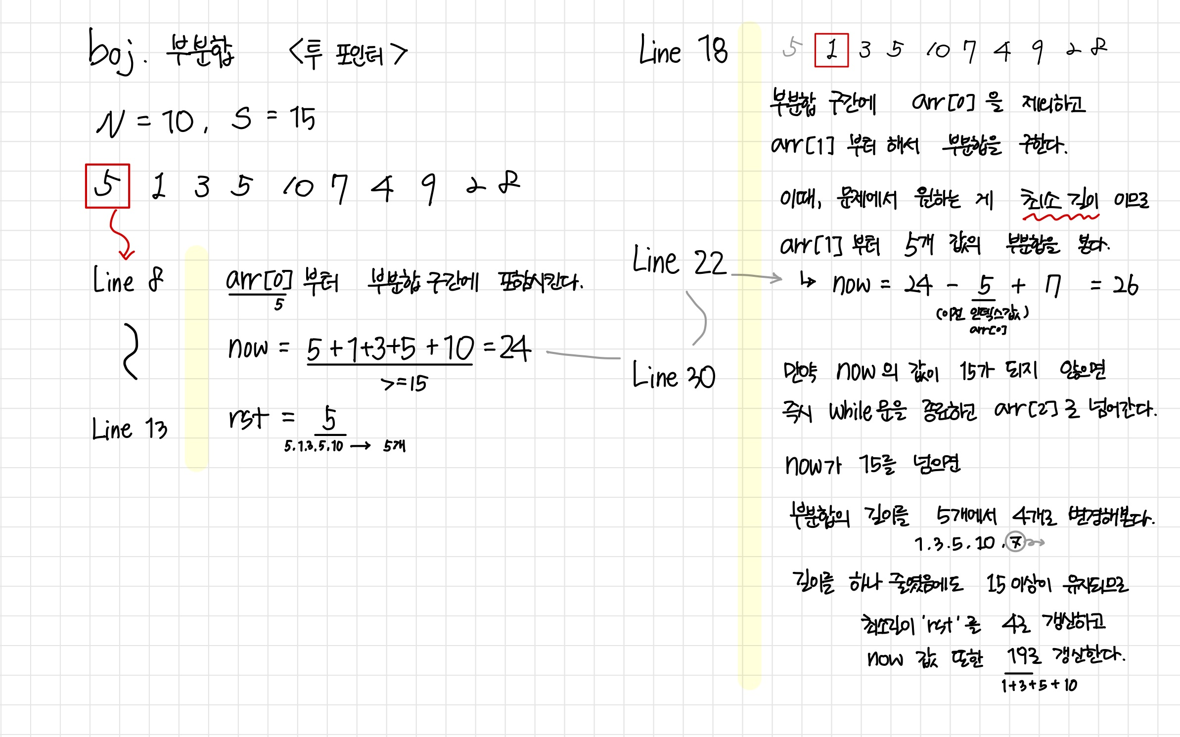 - 부분합을 구하는 범위를 우측으로 한 칸 전체 이동했다고 보면 된다.