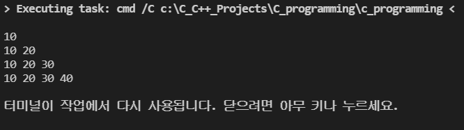 printNumbers(4, 10, 20, 30, 40); // 인수 개수 4개