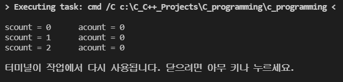 printf("scount = %d\t", scount);