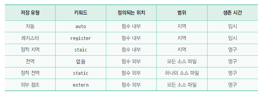 : 변수를 선언한 위치에서 자동으로 만들어지고 블록을 벗어나게 되면 자동으로 소멸되는 저장 유형을 지정