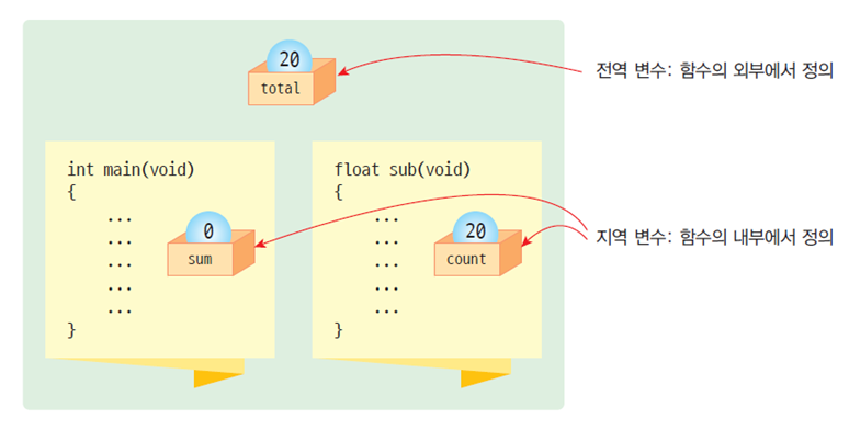 - 전역 변수의 범위는 소스 파일 전체이다.