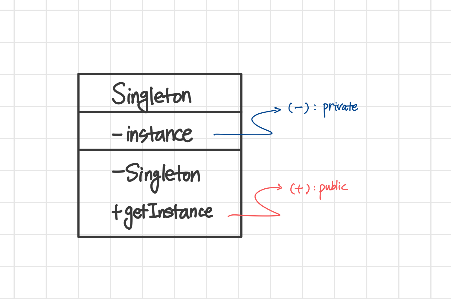 - 프로그램에서 인스턴스가 단 한 개만 생성되어야 하는 경우 사용하는 디자인 패턴
