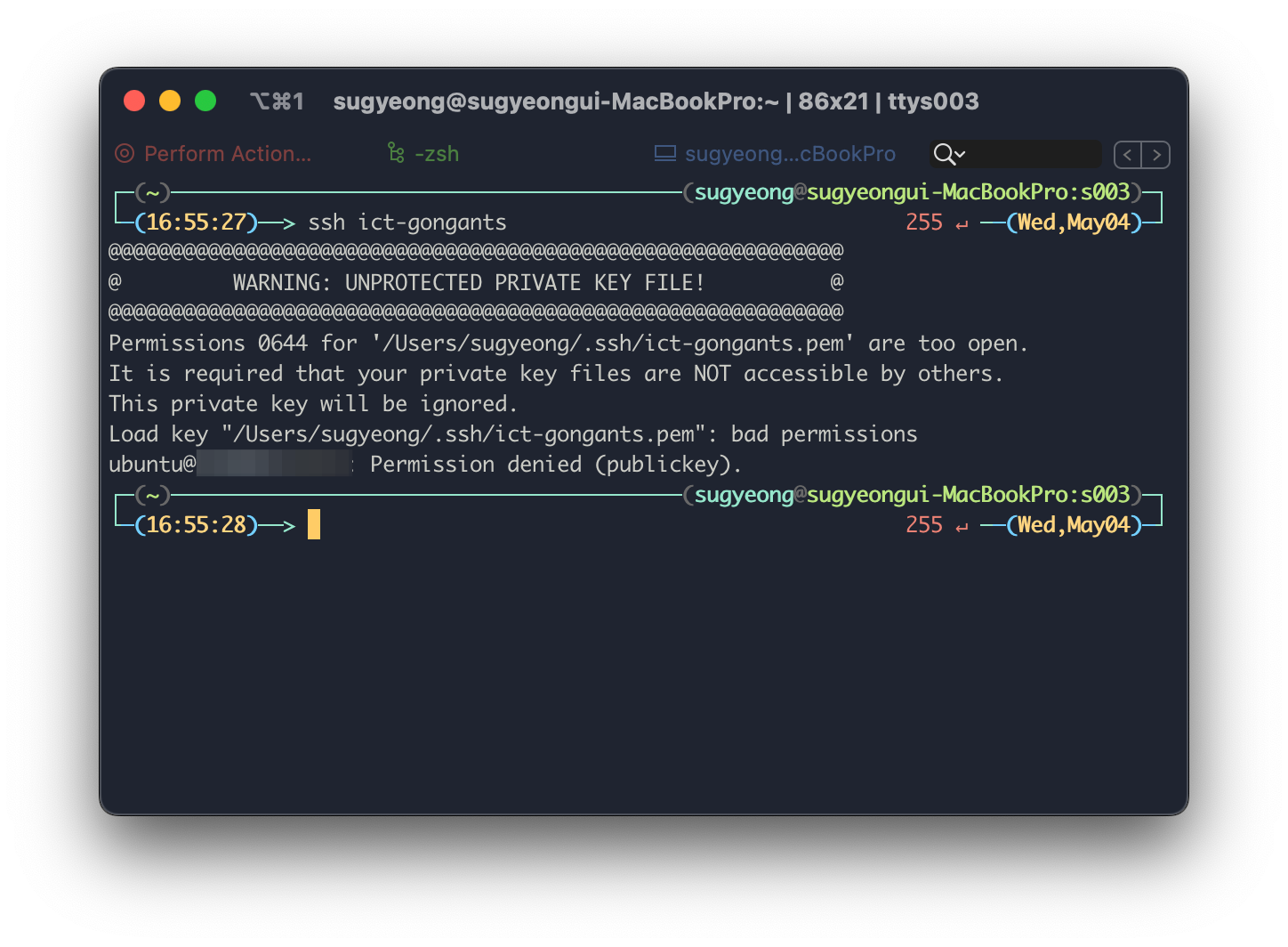 - 파일 권한 변경 후 재접속 시 성공적으로 접속 완료 !