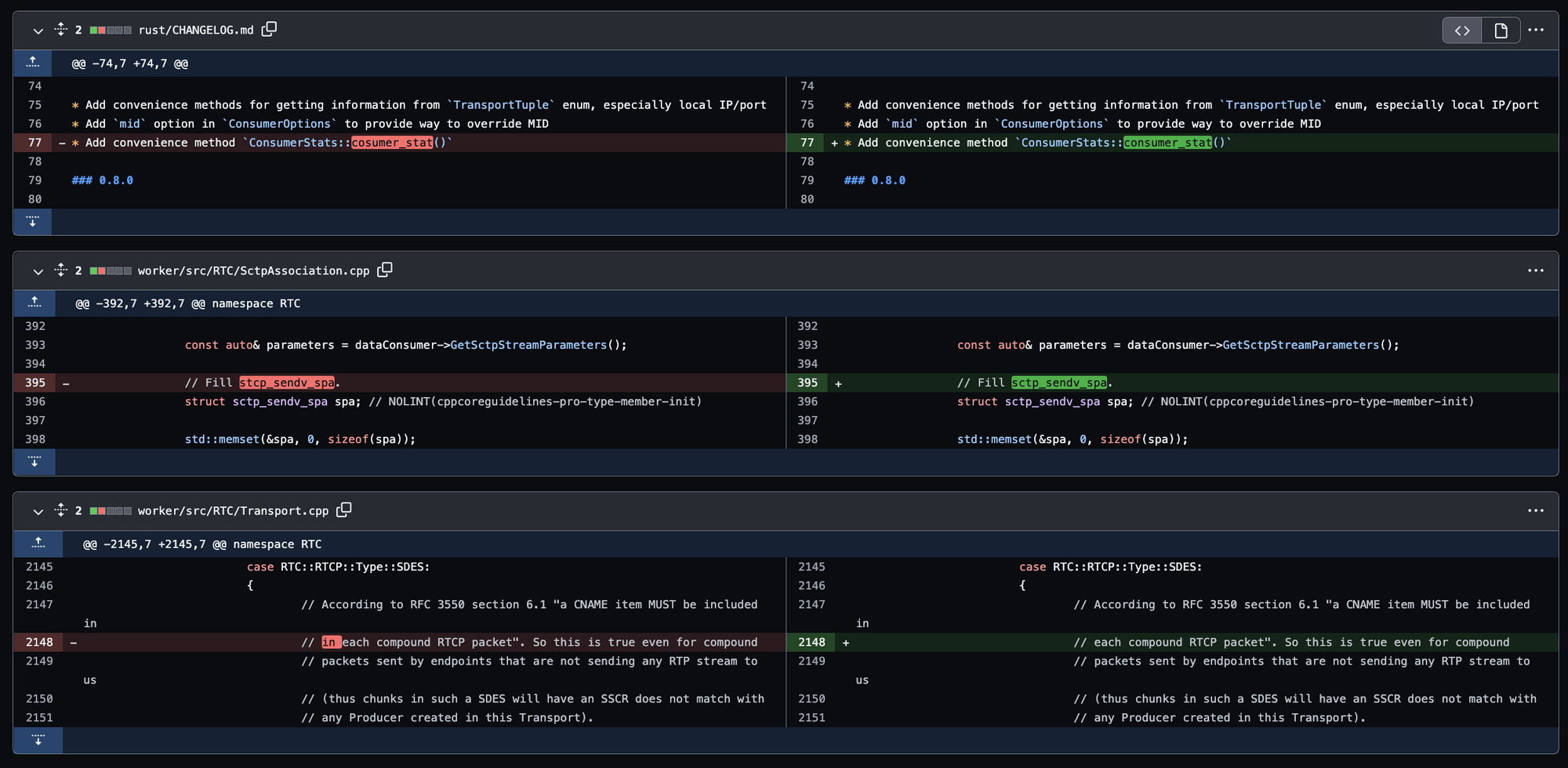 그래서 하나만 보내기에는 너무 작디작은,, 오타여서,, ㅎ 나도 함수나 변수명에서 오타를 찾아서 같이 묶어서 PR을 보내기 위해 다른 소스코드들도 뜯어보면서 오타를 찾아보았다. 🙃