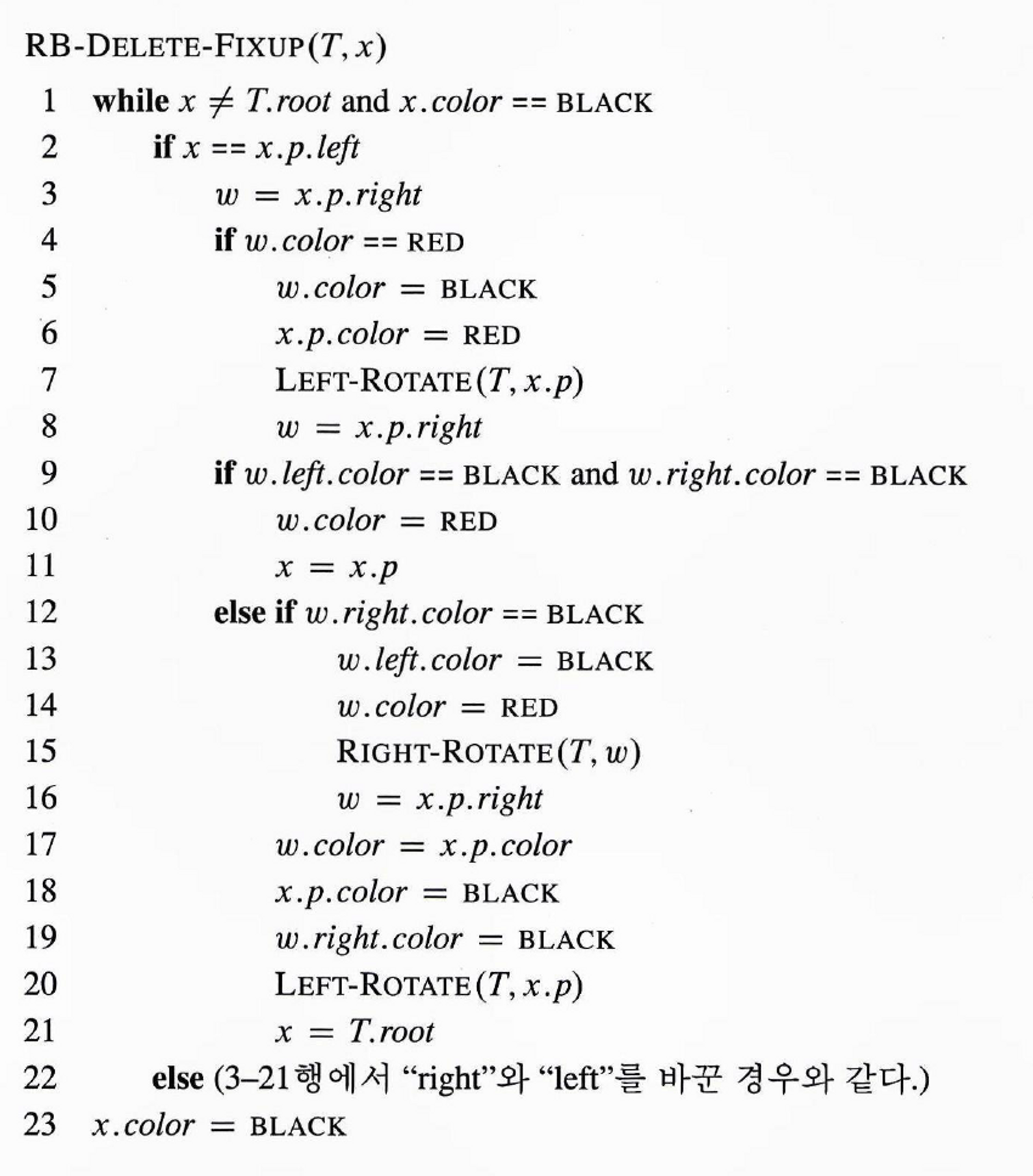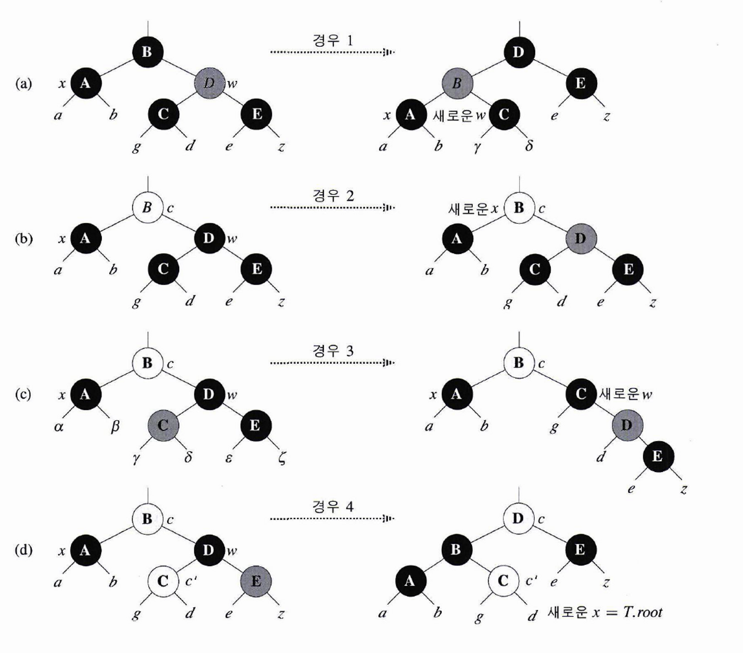 📢 x : 삭제할 노드, w : 형제 노드 , p : x 의 부모 노드