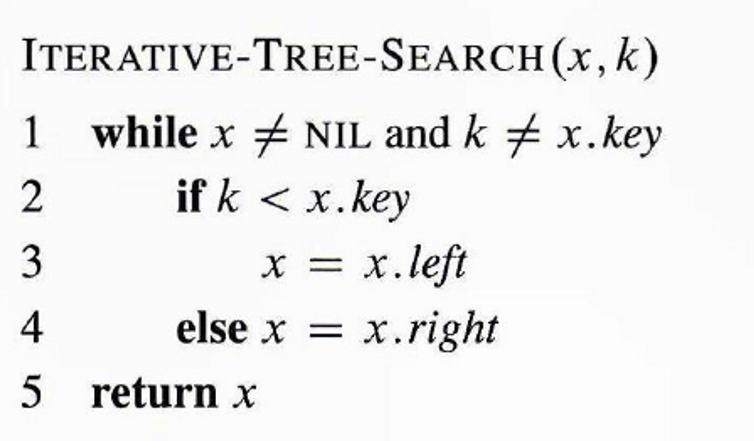 while(x != t -> nil){ // 리프의 부모 노드(NIL 직전 노드)까지 내려간다. (level : int(log N))