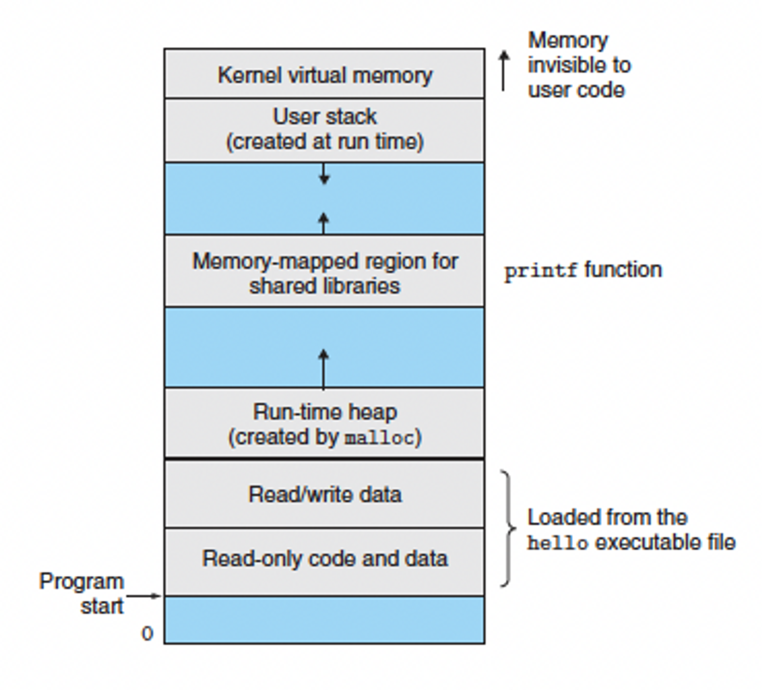 - 주소공간의 중간 부근에 C표준 라이브러리나 수학 라이브러리와 같은 공유 라이브러리의 코드와 데이터를 저장하는 영역에 존재
