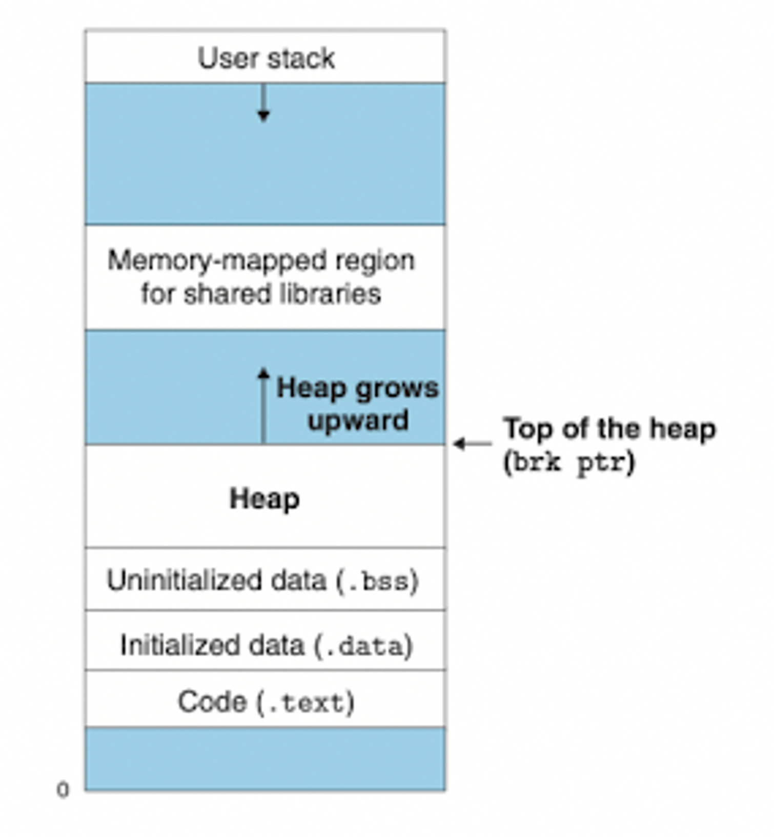 - 각각의 프로세스에 대해서 커널은 힙의 꼭대기를 가리키는 변수