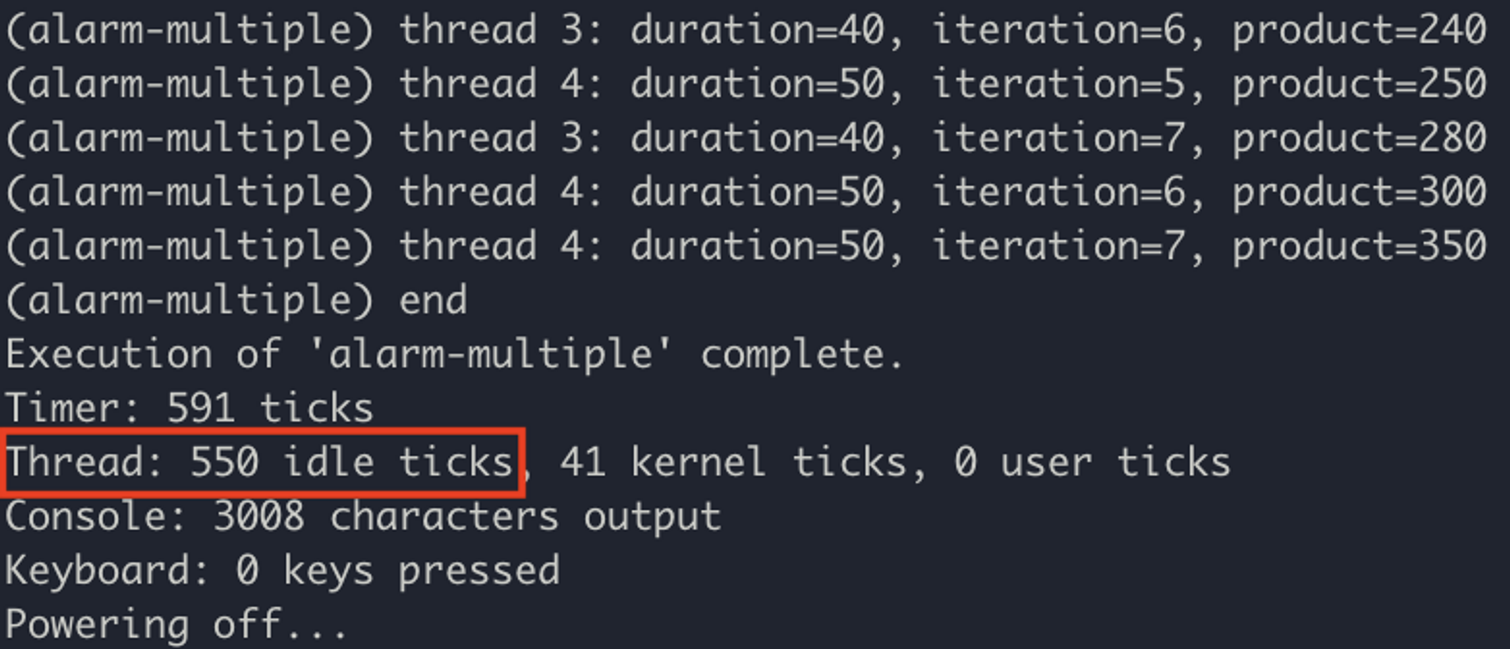 - PiintOS의 기본 time slice(4 ticks)가 지나면 자동으로 타이머가 발생하고 스레드간 컨텍스트 스위칭이 발생한다.