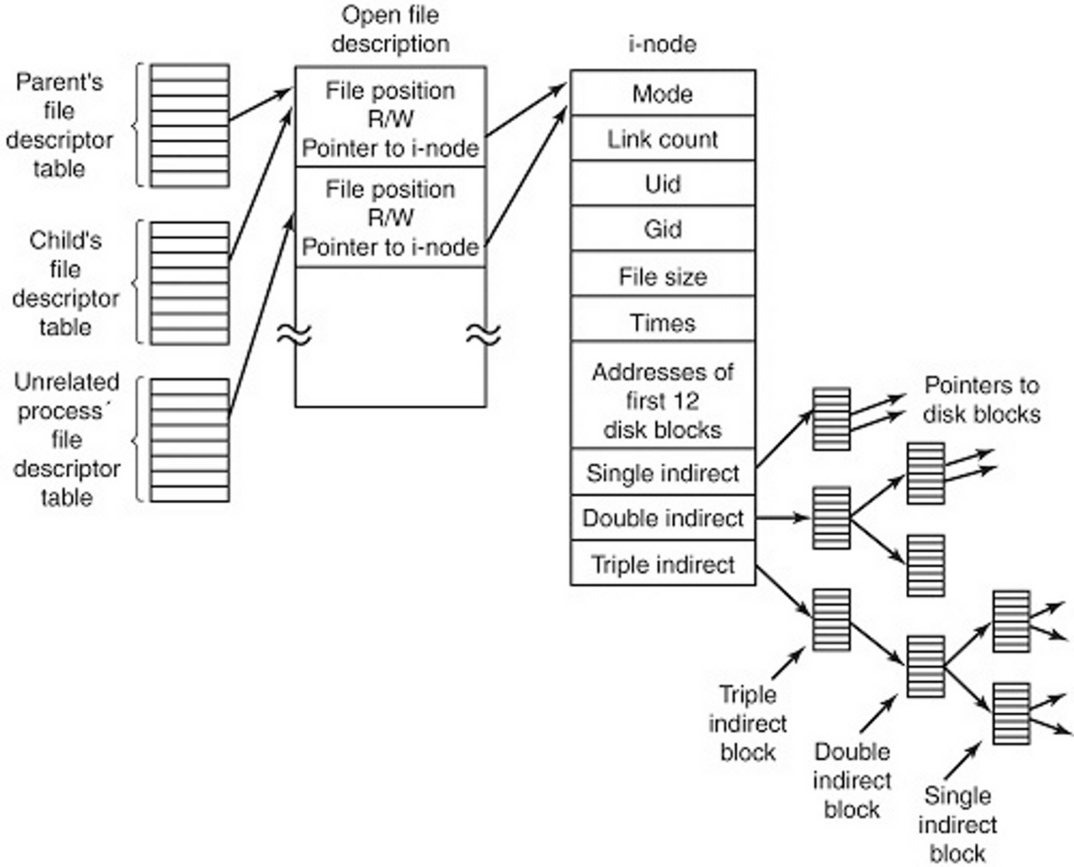 - 파일 디스크립터의 진입점은 단지 하나의 파일 테이블에 대한 포인터이다.