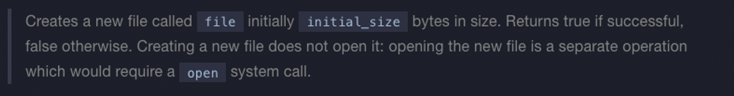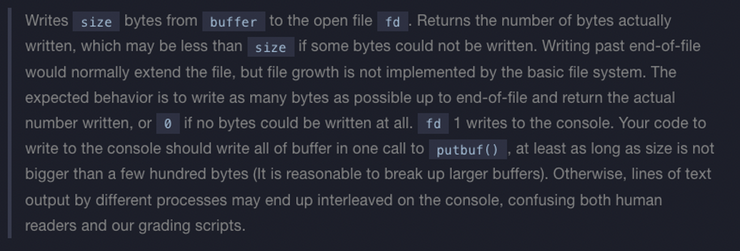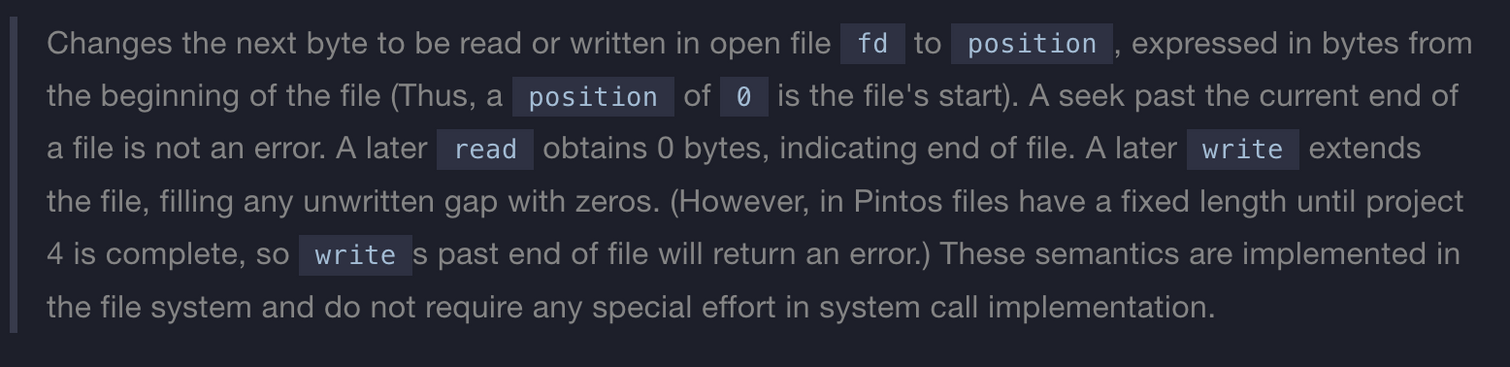 size보다 작을 수 있다. - 일반적으로 파일의 끝을 지나서 쓰면 파일이 확장되지만 핀토스 파일 시스템으로는 불가하다.