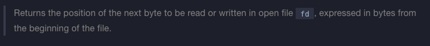 fd에서 읽거나 쓸 다음 바이트(파일의 시작 지점 부터)를 반환한다.