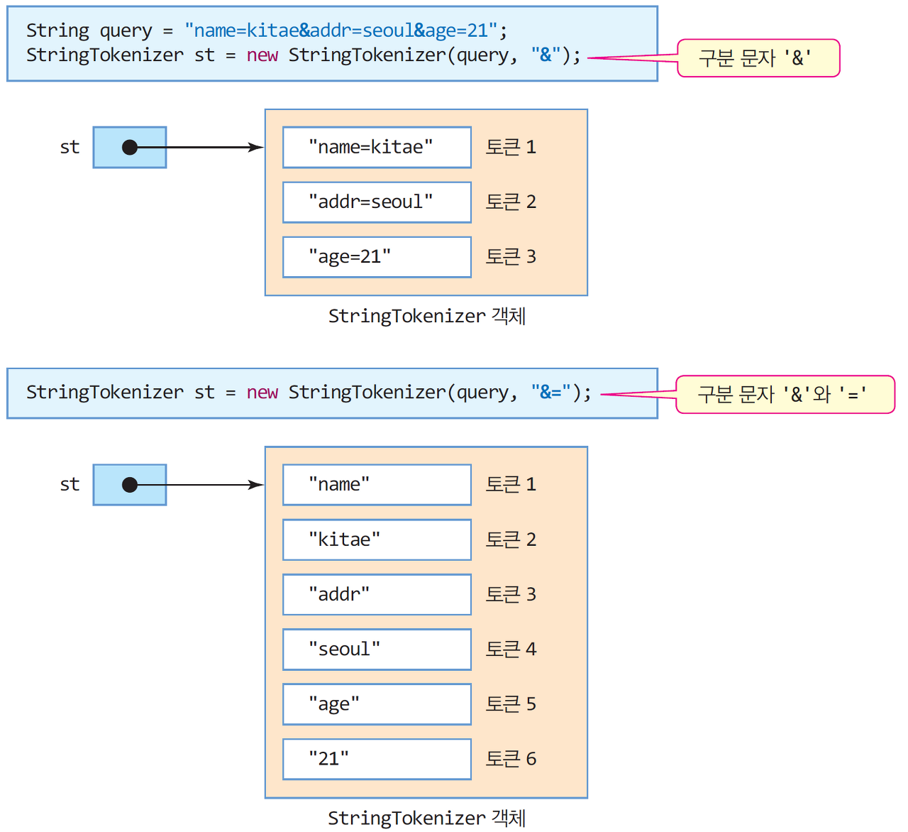- String 클래스의 split() 메소드를 이용하여 동일한 구현 가능