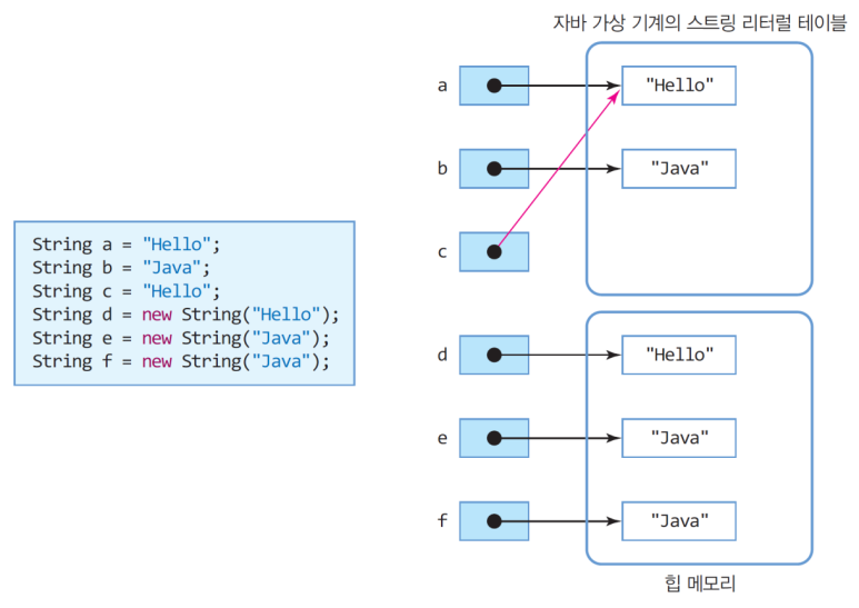 - JVM이 리터럴을 관리하고 리터럴 테이블로 관리된다.