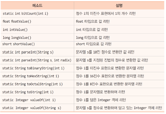 - 언박싱(unboxing): Wrapper 객체에 들어 있는 기본 타입의 값을 빼내는 것