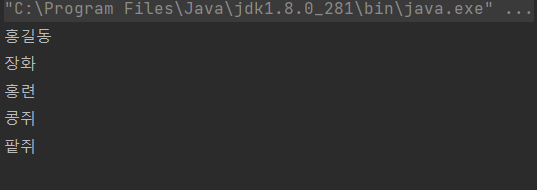StringTokenizer st = new StringTokenizer("홍길동/장화/홍련/콩쥐/팥쥐", "/");