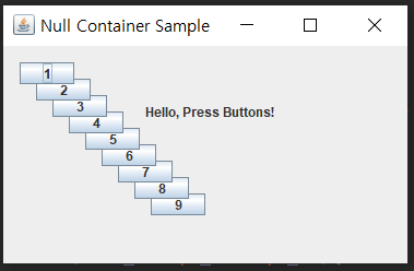 JLabel la = new JLabel("Hello, Press Buttons!");