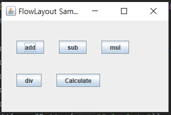 contentPane.setLayout(new FlowLayout()); // awt import 에 따른 결과