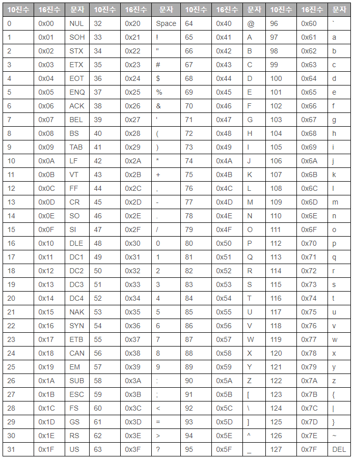 - 아스키코드표(출처 : 코딩도장)
